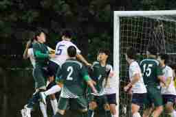 今年の新入部員も50名と多く、トップチームの練習が週2・3回の状況でしたがなんとか我慢して 勝ち続け、本校7回目となるベスト16がけに来ました。 日大鶴ケ丘は練習試合で5-2などで勝っているチームでした。 油断はなかったものの緊張が激しく、 前半はちぐはぐしてしまい前半7分にセットプレーで失点しました。 前半のうちに追いつき後半は攻め込みましたが点が取れず、 延長にPKを取られてそのあとは追い付けませんでした。 4月からずっと耐えてきただけにあと一歩我慢しきれなかったのが悔やまれます。
