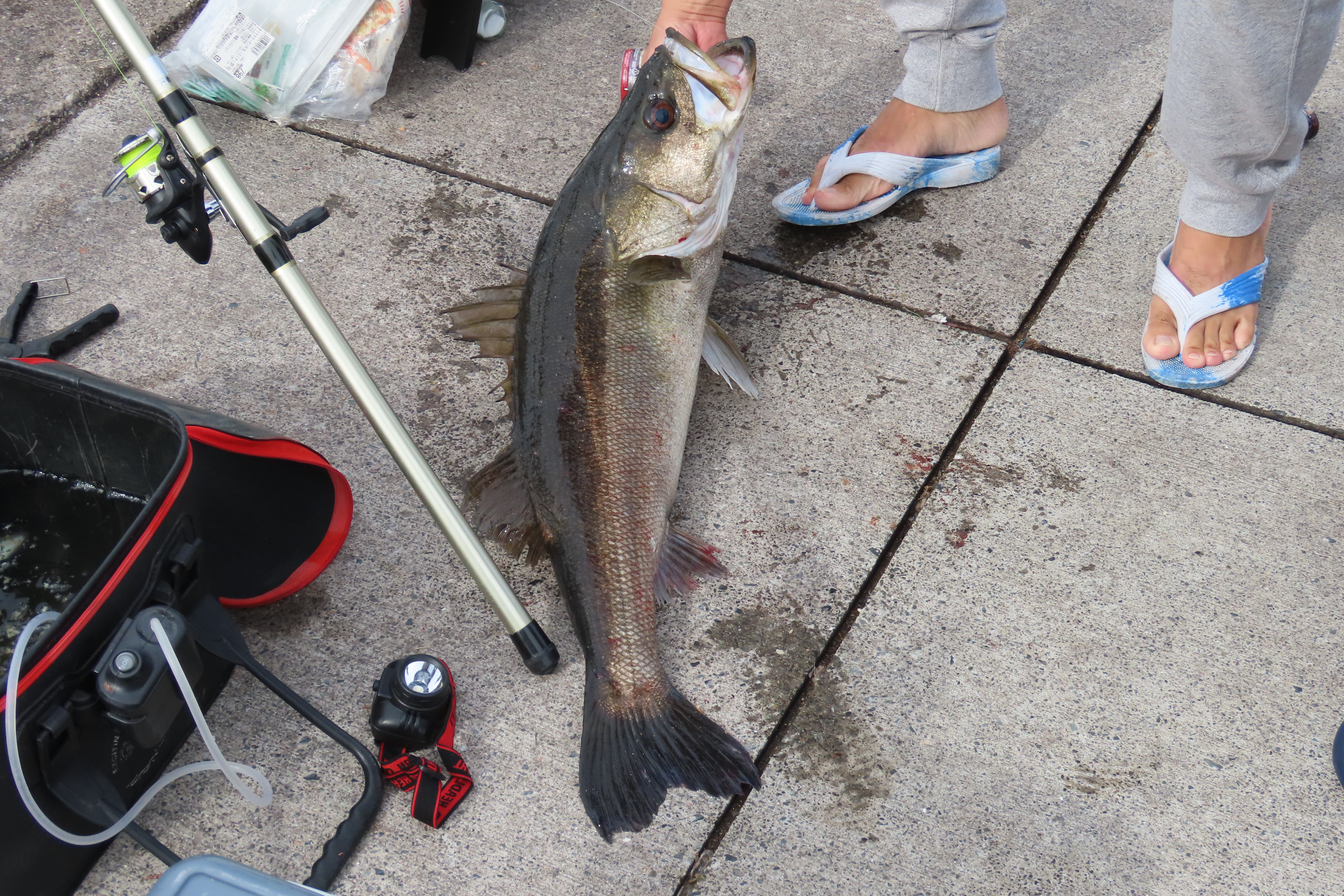 コノシロもよく釣れる 近くの人がルアーでシーバスを釣り上げた