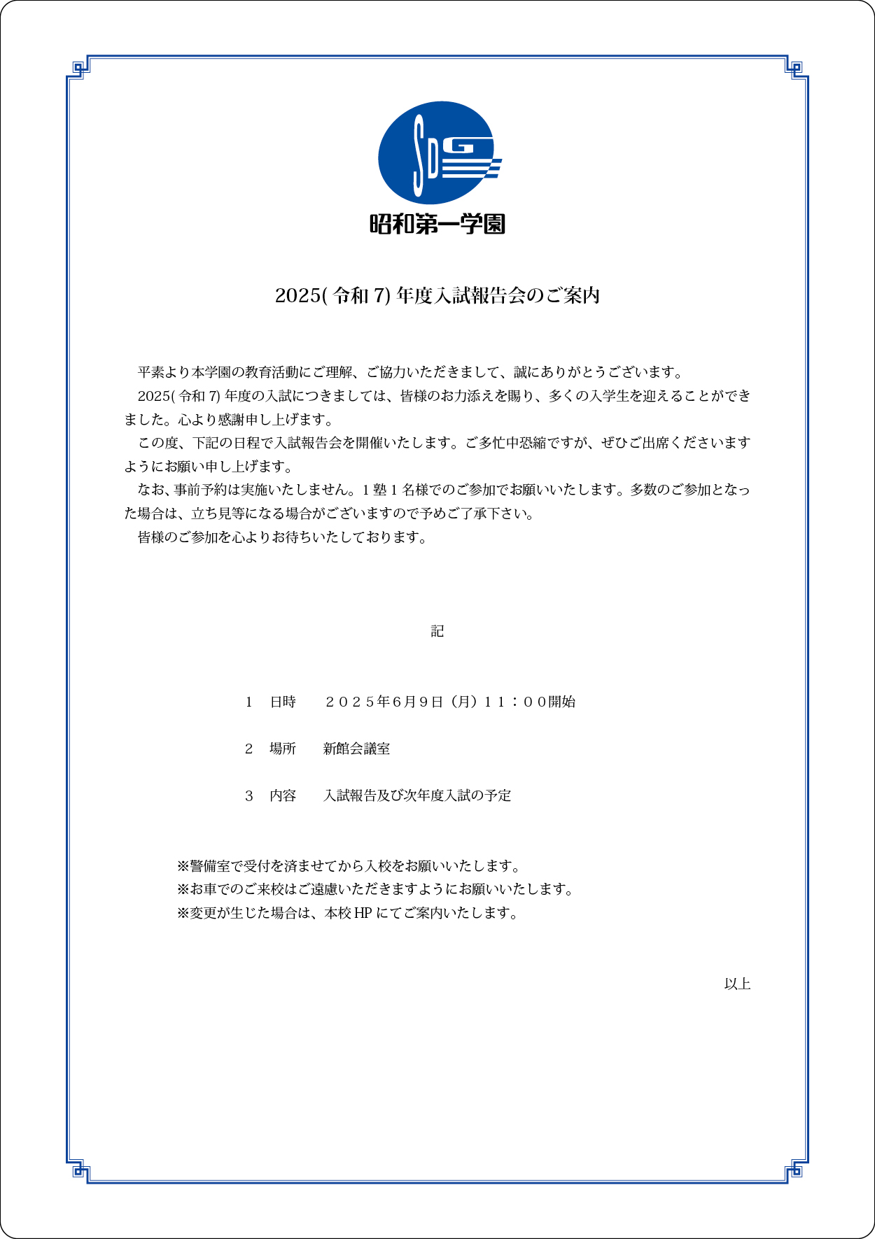 この報告会は塾対象の2025年度入試報告会となります。中学校や受験生、保護者の方が対象の報告会ではありませんので、ご注意ください。