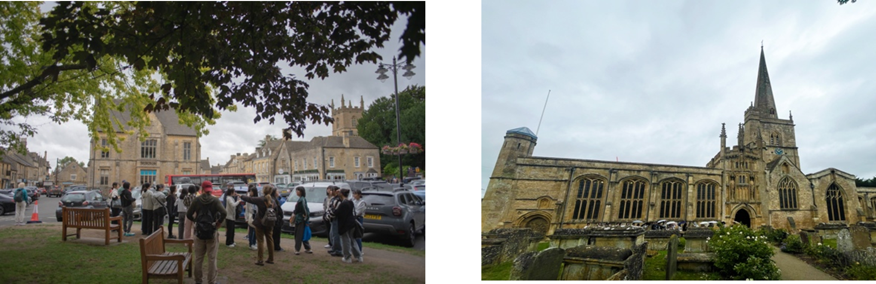 郊外のコッツウォルズへも訪れました。この日はあいにくのお天気となってしまいましたが、はちみつ色のレンガの建物、古い街並み、教会などを見学しました。